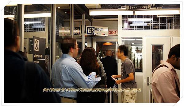 而旅館旁邊也有light rail可以搭到Hoboken再轉Path, 不過light rail單趟就要2.1 USD, 再轉Path要再2 USD, 而且這樣繞一圈很花時間,因此最便宜也省時的方式其實就是搭公車了,這裡有158, 156R和159R三種車,走的是旁邊的Lincoln Tunnel到Manhattan, 其中158車班滿密集的,而且約10~15分鐘即可到Manhattan的PABT (Port Authority Bus Terminal),那邊算市中心,時代廣場就在旁邊,所以不管是要往南或往北都滿方便的,但由於從NJ跨州進來,所以在New York買的Metro地鐵公車7或30天無限卡(7 or 30 days Unlimited Ride)是不能用的。而怕上下班尖峰時間會塞車很久的話,其實不用太擔心,因為我們七點多出門時交通都很順,甚至有一天約8~9點出門也只是小塞一下而已,基本上都沒超過半小時。這邊要注意的是,由於PABT是起站,因此上車一定要先在櫃台或是售票機買2 zone interstate的票,司機是不接受上車付現金的,但在沿途其他站搭車的話,是可以上車付現金給司機的。價錢的話單趟是3.2 USD, 如果多人又住好幾晚的話,可以買10-trip的方案,10張票27 USD,等於單趟2.7 USD, 其實還是有點小貴,因為才搭一站而已,若跟住Hoboken比的話,坐Path地鐵就到Manhattan了,單趟才2 USD (還是剛漲過價的,原本只要1.7 USD), 甚至也有10-trip方案更划算,所以其實住Hoboken地區還是第一選擇啦。至於公車時刻表請自行上NJ transit網站下載158, 156R和159R的詳細時刻表。