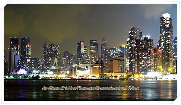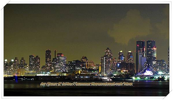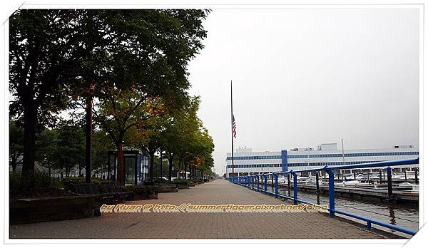 接著就是住這間旅館的獨家景點啦,由於就在碼頭旁,所以飯店外的河堤步道景色真的很好,晚上的時候可以眺望Manhattan的夜景,推薦往前走到一家叫做Chart House的餐廳,那邊就像是碼頭那樣的延伸設計,而餐廳的兩邊都有走道可以讓人觀賞夜景,由於不用進到餐廳內當然就是免費囉,不過賞夜景最佳位置還是在餐廳裡面就是了,如果想順道來份晚餐的話也許可以考慮這邊,景色真的是一級棒。由於Manhattan的夜景多半是在高樓看或是在東南邊Brooklyn的DUMBO看,就算搭了纜車到Roosevelt Island也是從東邊看,所以一般觀光客是不會有機會從西邊看Manhattan夜景的,而Hoboken那邊雖然也是西邊但是由於正在施工地鐵,所以很多都圍住了,因此在Lincoln Harbor算是一個從西邊看Manhattan夜景很棒的點,既然住這邊的話,絕對不要錯過這邊超棒的夜景囉~