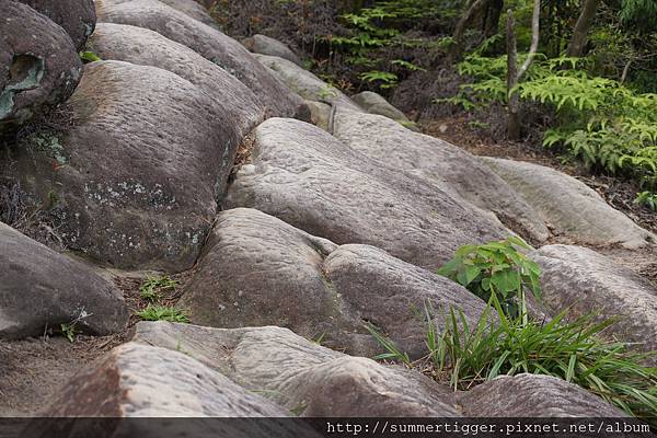 沿途的岩石都是斜面的花崗岩,有含石英礦石,所以會有些閃閃發光,過去這邊也是採礦場