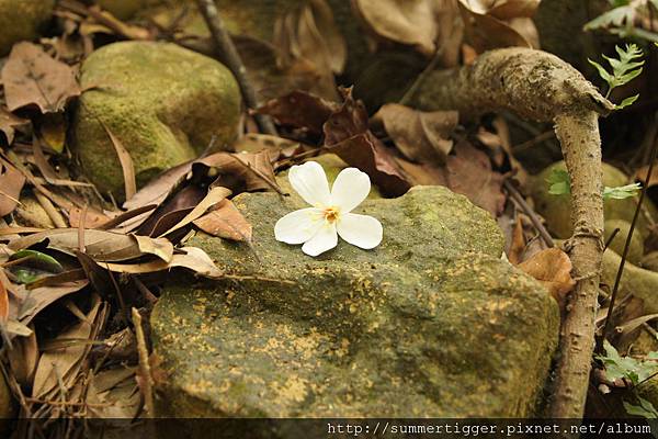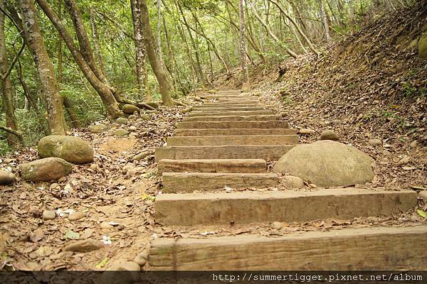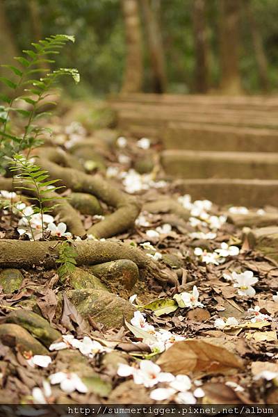 由於是桐花季,到處都可見飄落的桐花,這邊可能是因為走的人多,步道上的桐花不多,大部分是散落在兩旁...