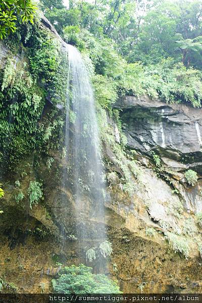 聽見水聲但不見其瀑,原來這個瀑布在路線上是看不太到,得到觀瀑平台才能略窺其姿態