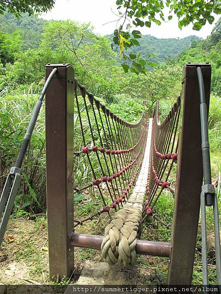 接著有繩索吊橋通過小溪,其實枯水期的時候直接從溪流跨過也可以,我想是為了水量充沛時的安全性所建的吧,這些吊橋都是後來才建的
