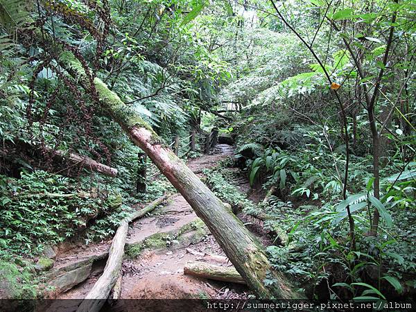 步道開始趨向原始,路上隨時有樹枝擋道,但至此路徑仍算簡易,沒有太多困難
