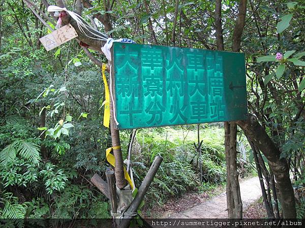 接著會看到一面告示牌寫著大華車站、新寮村大厝和十分火車站的方向,而離這裡最近的車站當然是大華車站了