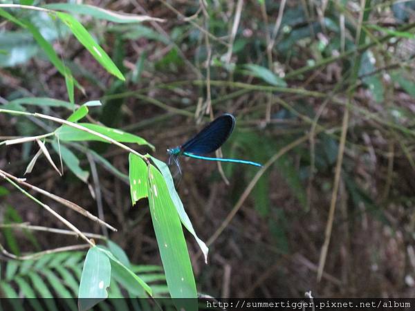 路上遇到藍色的蜻蜓,很漂亮,上網查詢後應該是白痣珈蟌 (昆蟲: 蜻蛉目…均翅亞目…珈蟌科)