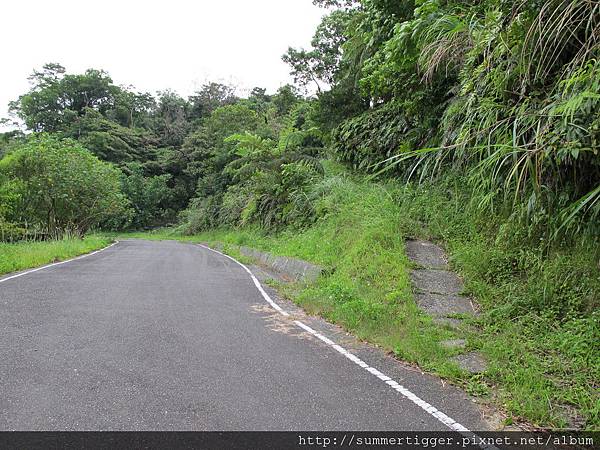 到底就會看到一個小村莊,就是新寮大厝,這有公廁可以使用。繞過小村莊後走到小叉路往左轉,努力地向前走就能看到廢棄的野人谷,這時候要直直地穿過停車場,在廢棄售票亭旁有一條小路往上,往那邊走就對了,千萬別往右邊的大柏油路衝,那邊不是往大華的方向,接著就是一段滿長的山路了,這時候已經有點累了,但又想趕上14:45分的火車,所以沿途就沒有照相記錄了。