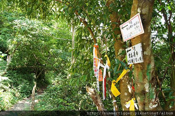 綁滿了登山條的入口,指標寫著往雲森瀑布