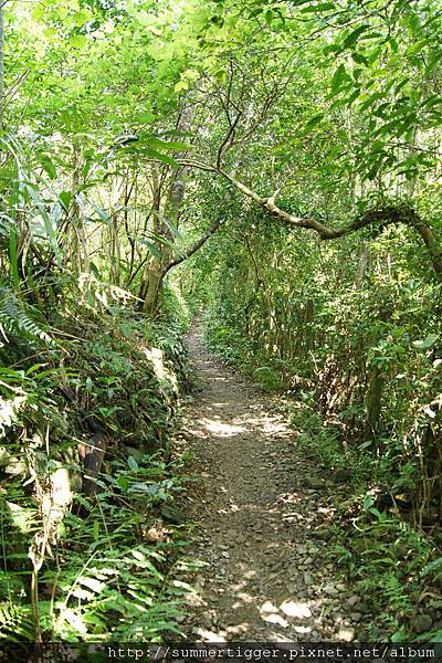 山徑裡十分涼爽,樹木參天,宛如世外桃源,不時從下方傳出嬉戲遊玩的年輕人聲音,我想應該是在烤肉吧