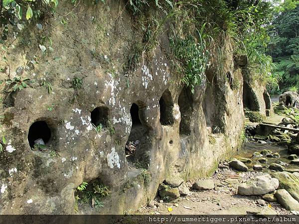 雖然已經無人管理了,但其實裡面的步道還算好走,而且很快就到目的地了。而之所以稱做石窟大瀑布,顧名思義就是這裡有許多的石窟,雖然也是人工開鑿的,但比起十分瀑布則多了一些古意