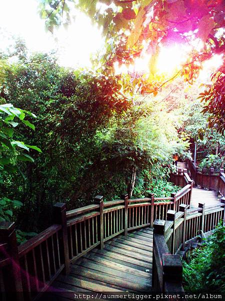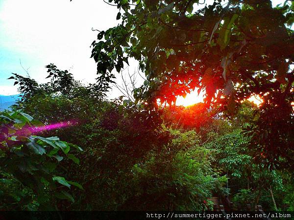 夕陽從葉縫中灑了進來,其實傍晚來爬山除了比較不熱外,還可順道欣賞夕陽,只要挑較短程的路線,能夠順利下山,其實也是很棒的安排