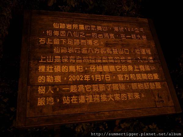 晚上下山時照的介紹牌,我走的入口是比較少人選擇的樸質泥土路,感覺起來比較有像爬山阿 (雖然只是一開始而已....)