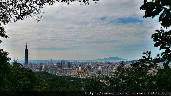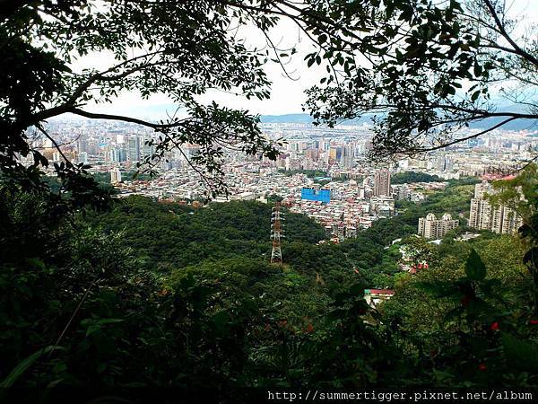 往下望去是南港內湖一帶,連遠處的山也都看得很清楚,看位置應該是內湖那一帶的山,甚至七星山系也都可見