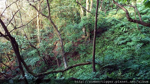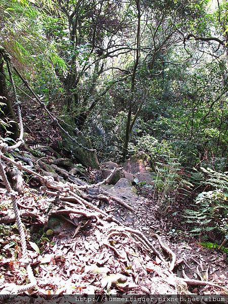 一直走差點就過頭了,因為沿路很多小徑,走久了就都自動忽略啦,直到回頭一望才發現要從這個小徑爬上去才會到拇指山頂