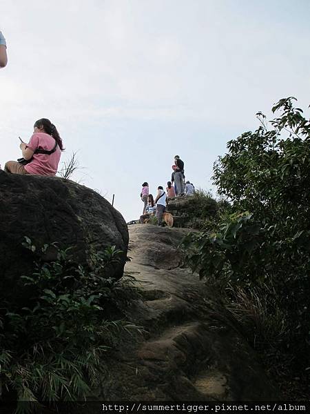 其實要登拇指山頂有一小段路較不好走,這時候就發現前面一組人帶的黃金獵犬很害怕,寸步難行的窘境,還要主人在後面不停推他,果然是都市狗阿,我看山區內的許多野狗都跑跟飛一樣自在