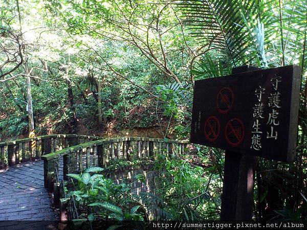 跟之前走虎山自然步道一樣的入口--慈惠堂,這次取右行走虎山溪步道,虎山溪是全台第一條用生態工法整治的野溪,所謂生態工法就是捨棄過往的水泥工法,整治溪流不再只是用人為的水泥砌成河堤,防止水患,而是以保護當地生態的多樣性為主軸,思考利用近自然的工程方式來達到不破壞現有生態的方式,來減少水患的發生,而虎山溪之前也復育螢火蟲成功,螢火蟲代表的是當地生態環境的好壞,如果生態環境遭破壞,螢火蟲因不適髒臭環境和環境變遷,就會先消失。