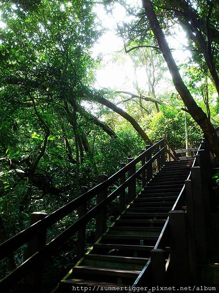 沿途都沒什麼爬山的感覺,路很平坦,這邊終於有階梯可以爬了