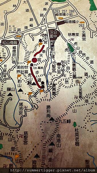 路線圖: 台北市信義虎山溪步道 虎山峰 虎山稜線步道 奉天宮步道路線圖 (在圖片按右鍵可下載大圖)