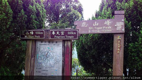 雖然心裡想著似乎被騙了,因為虎山溪自然步道根本就10分鐘就結束了,而且過南天宮後經過一堆小廟和民宅,岔路很多,雖然我不是很想走柏油路,所以一路都想往岔路走去,但還礙於時間有限還是忍住了,終於看到有往虎山奉天宮步道的指標