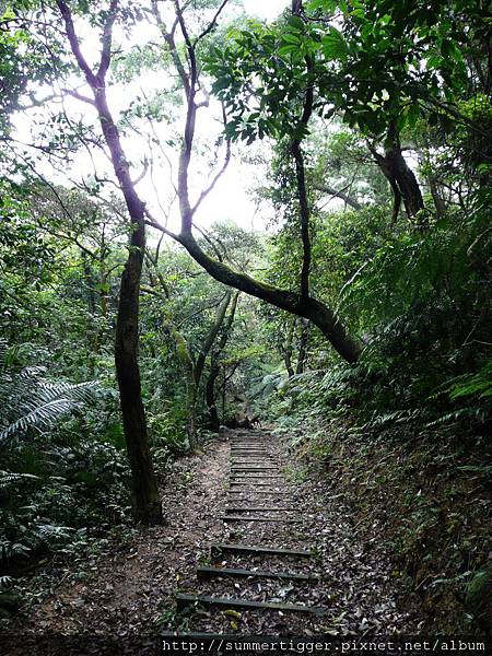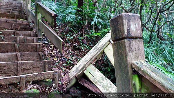 沿途都是木棧階梯,與一般整修良好的步道都是採用花崗岩石差很多,但也多了一分質樸的氣息