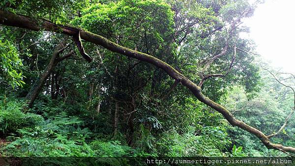 也許是為了向光,在茂密的森林中有許多樹幹歪斜的狀況