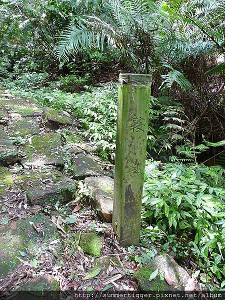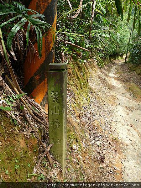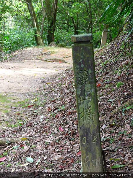 果然看到離麗山橋口200公尺的木樁,不過其實走右邊也是有墳墓的