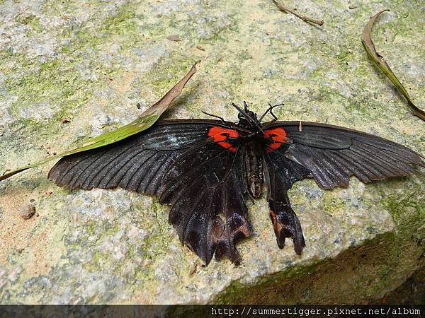 地上躺了一隻死掉的蝴蝶,很大隻,看起來像是鳳蝶的一種,我不是很確定