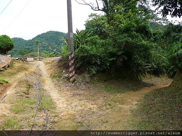 左邊的民宅大概是被登山客誤闖過,已經立告示牌表示私人土地禁止進入,也養了疑似惡犬看門,我用高光學變焦在遠處照相,還是被惡犬發現,果然有盡忠職守